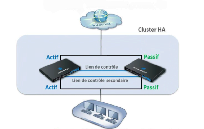 - La haute disponibilité (ou tolérance de panne) proposée sur les firewalls Stormshield permet d’assurer une continuité de service même en cas de dysfonctionnement d’un produit.